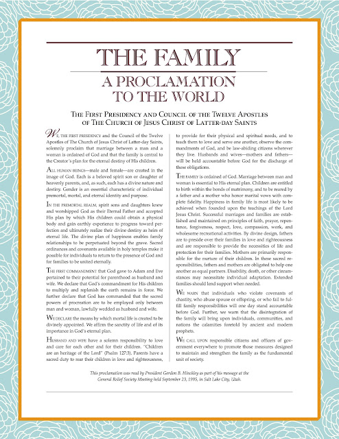 Having the proclamation on display in our homes will help all of us to know the will of the Lord pertaining to families and it will help encourage us to defend the family, know the doctrine and aid us defending the family and our God given roles and responsibilities as His sons and daughters. Display it with pride! Alright, get choosing.